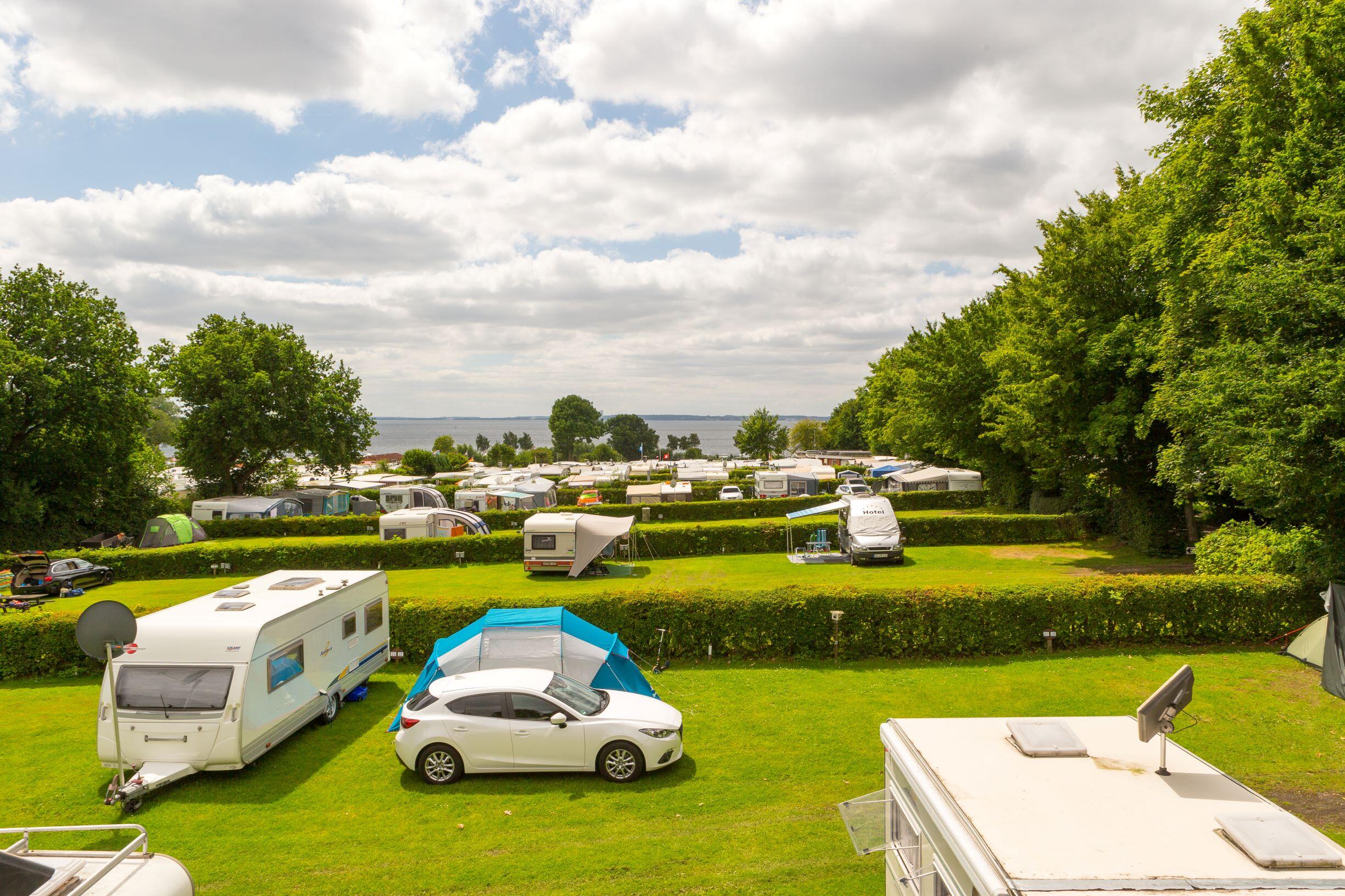 Unsere Plätze für Zelter sind bis zu 70m² groß und bieten ausreichend Platz für Zelt und Pkw. Durch die Hanglage haben Sie von vielen dieser Plätze einen schönen Ostseeblick über die Lübecker Bucht.