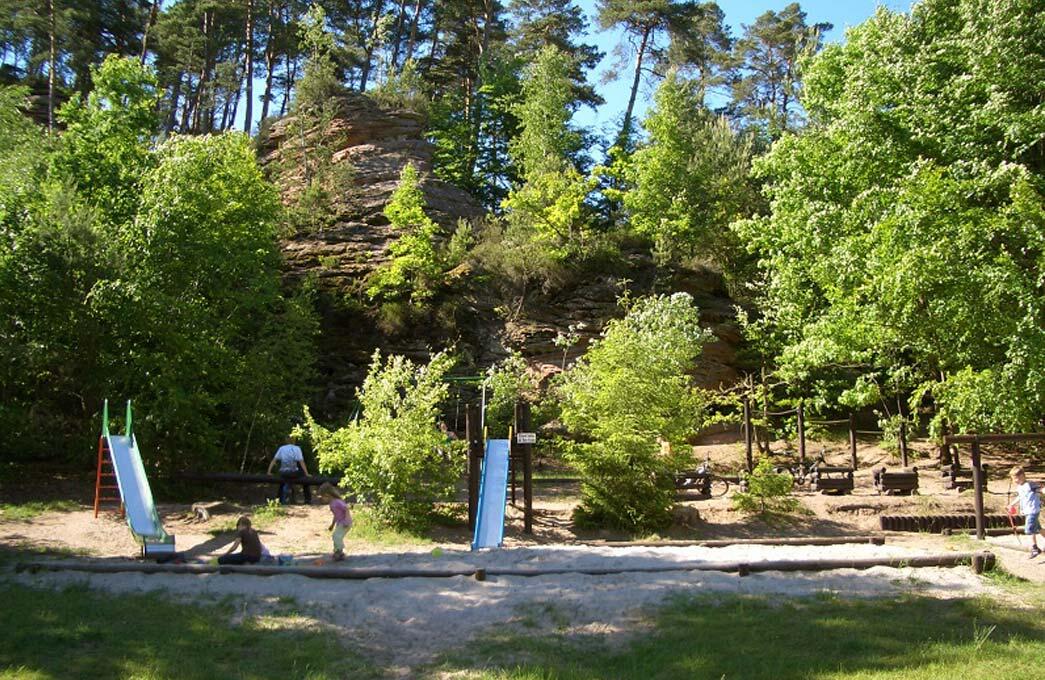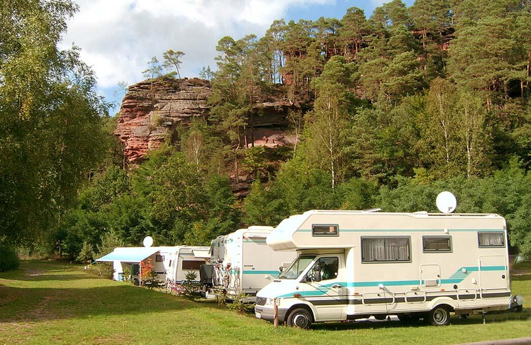 Unser Campingplatz liegt in einem ruhigen idyllischen Seitental mitten im Dahner Felsenland im Wasgau, dem südlichen Teil des Naturparks Pfälzerwald.
