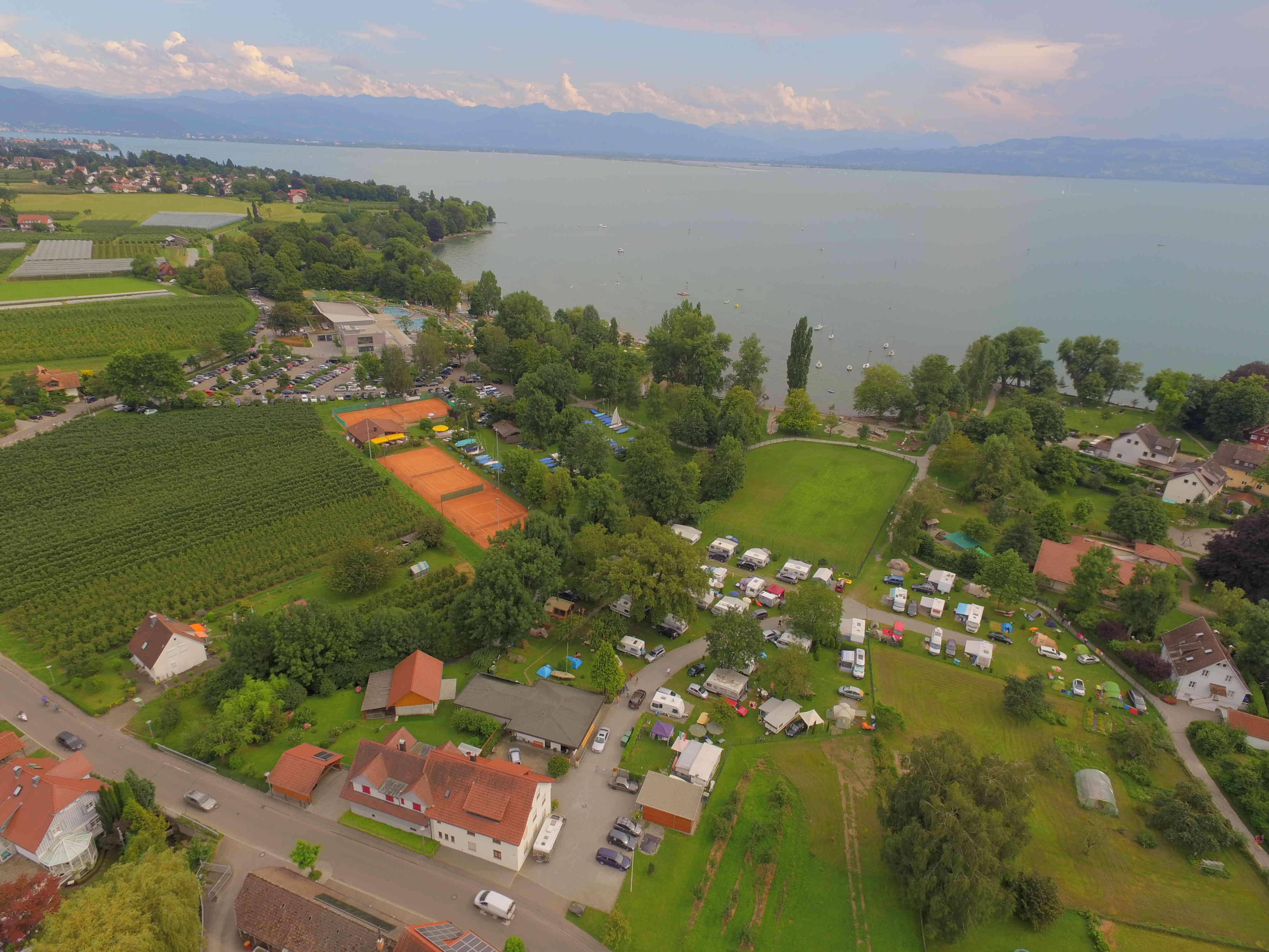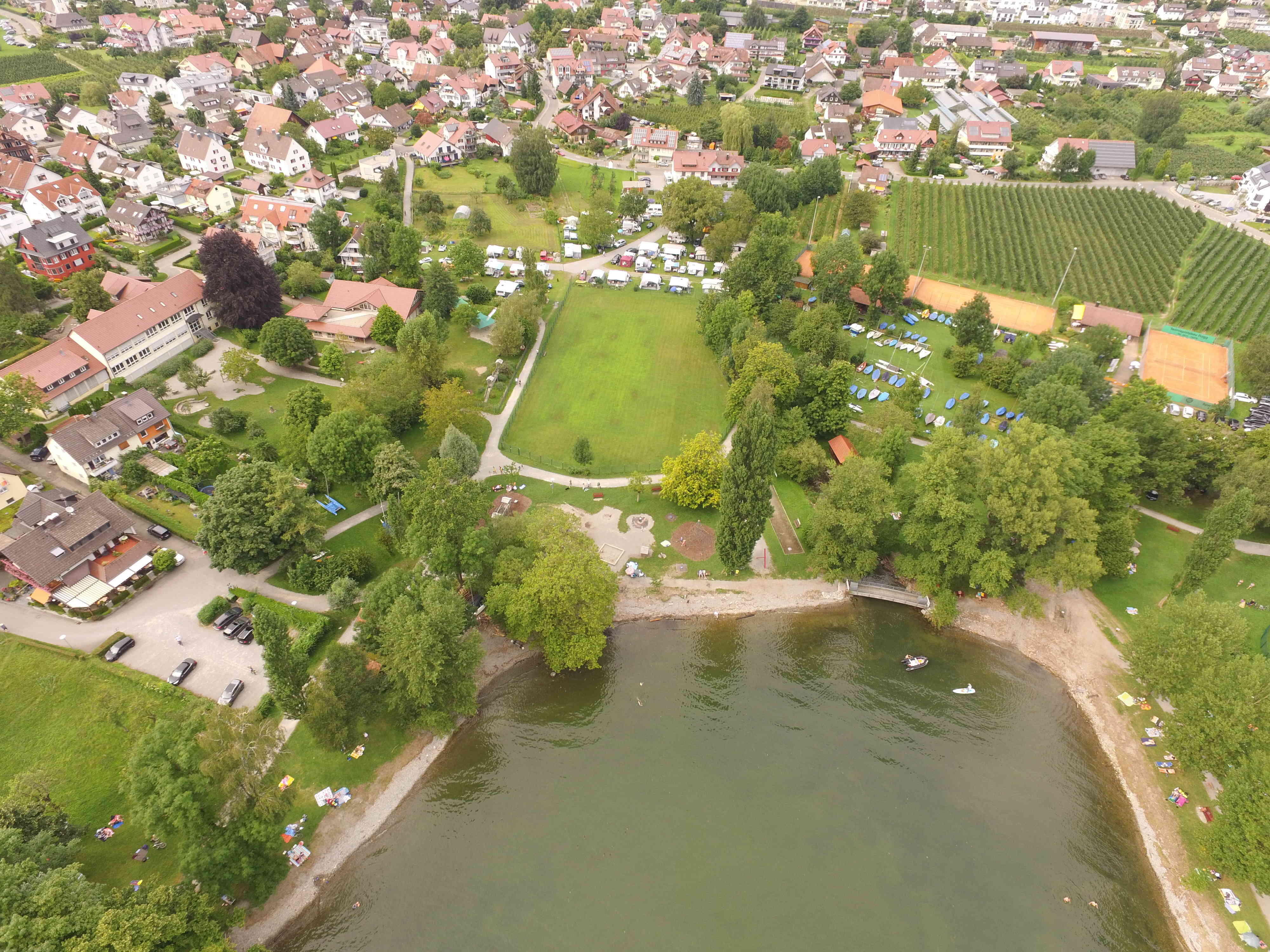Das Gelände des Camping-Eschbach liegt am Ortsrand von Wasserburg, in unmittelbarer Ufernähe.
