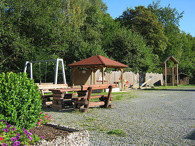 Auf einer der Terassen finden Sie ein gemütliches kleines Holzhaus, geeignet für 6 bis 7 Personen, welches als Aufenthaltsraum einlädt und Schutz bietet, wenn mal nicht nur die Sonne scheint. Ein Grillplatz mit Schwenkgrill lädt zu gemütlichen Abenden am Lagerfeuer ein, für unsere kleinen Gäste gibt es einen Spielplatz, eine überdachte Tischtennisplatte und natürlich den Bachlauf der Valme, welcher in den Sommermonaten zum Planschvergnügen einlädt.