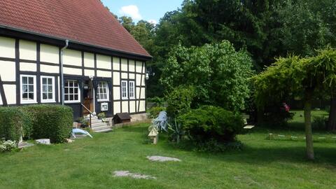 Unser Haus ist 300 Jahre alt, ein ehemaliger Bauernhof und befindet sich im Denkmalensemble von Tiefurt.