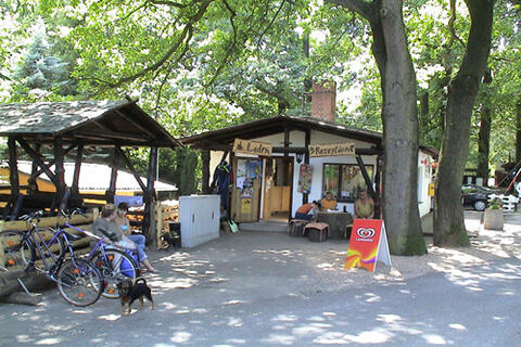 Jugendwiese und Gruppenwiese, halbschattige Wiese für Gruppen und Aktive Familien mit Feuerstellen Spielplatz und Stromanschlüssen (CEE 6A).