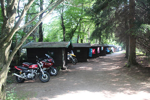 Meilerwiese, sonnige Wiese von Bäumen und unseren Campinghütten umstanden nur für Zelte geeignet.