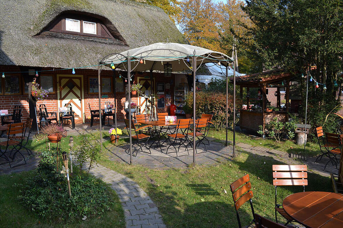 Im reetgedeckten Haupthaus finden Sie direkt neben der Rezeption einen gemütlichen Tresenbereich.