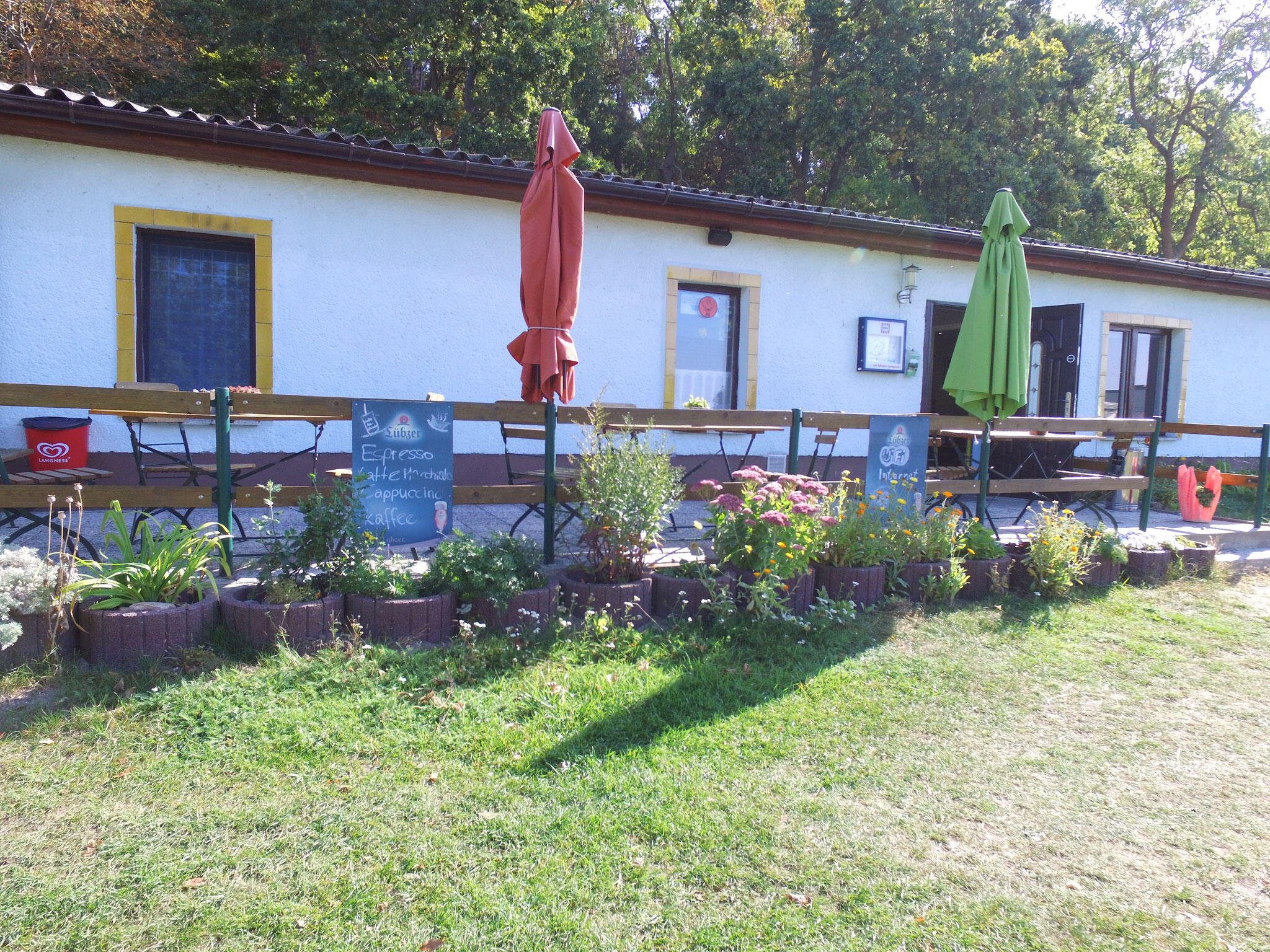 3 moderne Sanitärgebäude und mehrere Badezugänge zum See (teilweise mit Treppe) und ein großer Spielplatz stehen Ihnen zur Verfügung.