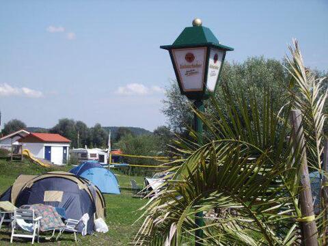 mehrere Zeltbereiche in Seenähe