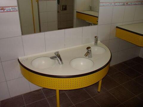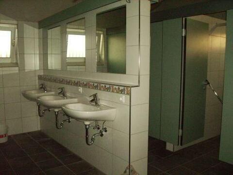 modernes Sanitärgebäude mit separatem Behinderten- und Kinderwaschraum