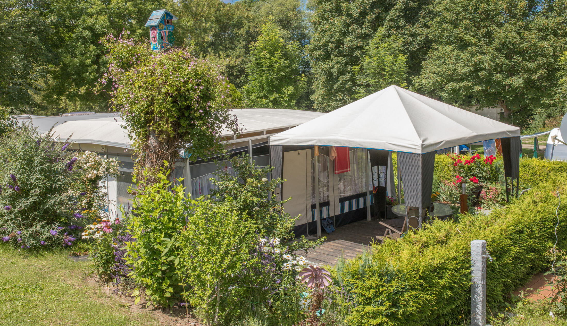 Wir wollen, dass Sie sich auf unserem Platz rundum wohlfühlen. Dazu gehören auch verschiedene Freizeit- und Einkaufsmöglichkeiten. Unser Mini-Shop mit angrenzender, überdachter Terrasse lädt zum Verweilen ein. Hier findet sich eigentlich immer jemand, mit dem man auch mal einen kleinen Plausch halten kann.