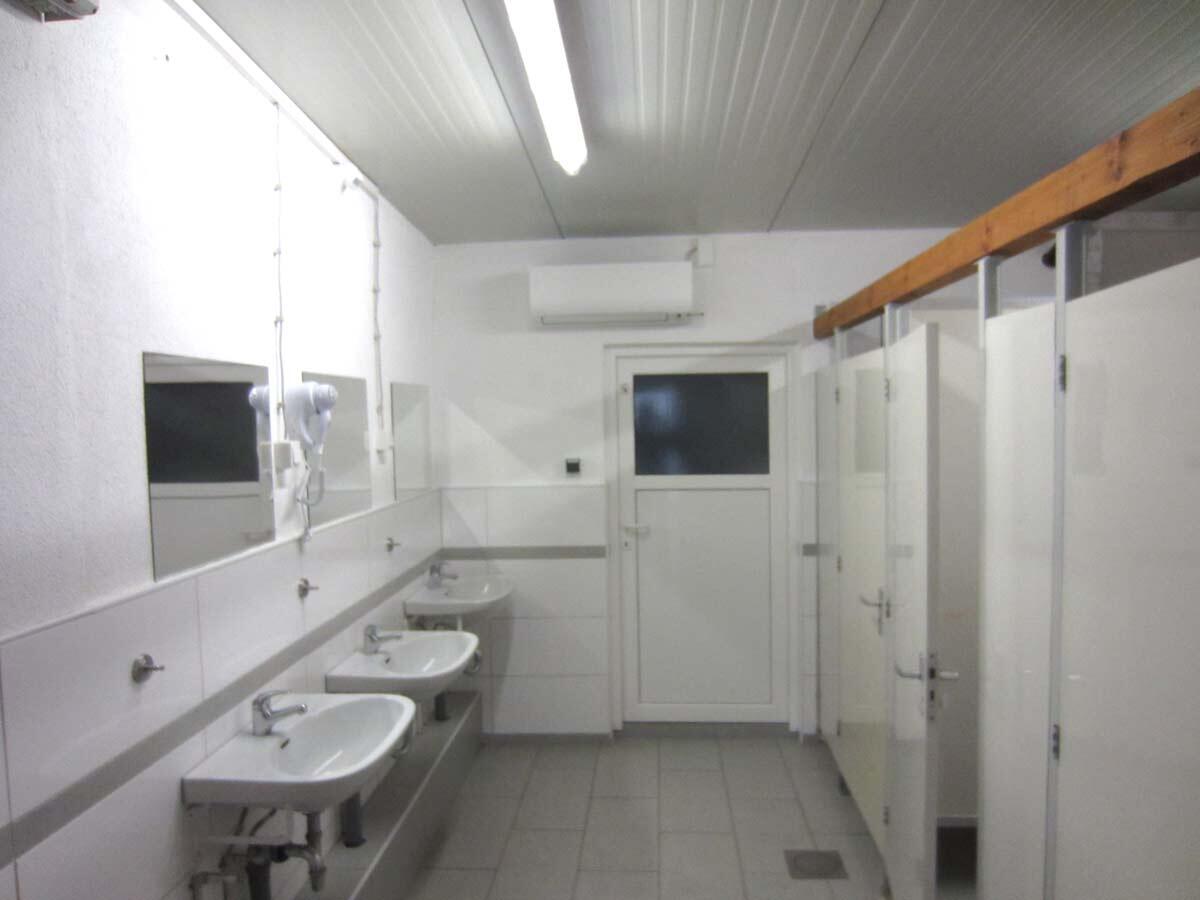 Steckdosen zum Handy oder Fahrrad Aufladen, Heizung, Freies Wlan, Sitzbank und Duschkarte für Sanitärgebäude Campingplatz.