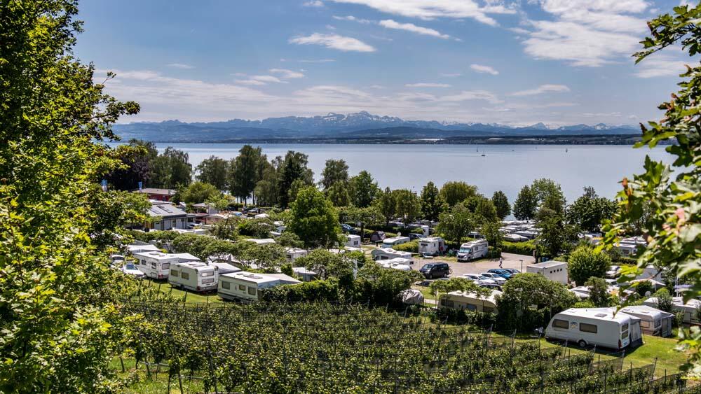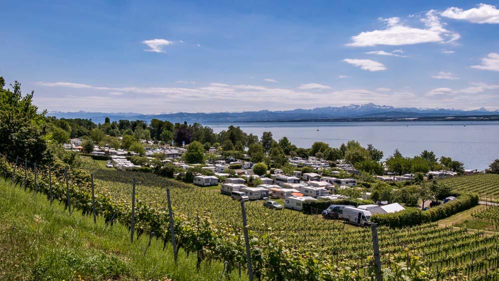 Der Campingplatz Alpenblick liegt an der Sonnenseite des Bodensees am Ortsrand des wunderschönen, idyllischen Winzer- und Fischerdorfs Hagnau.