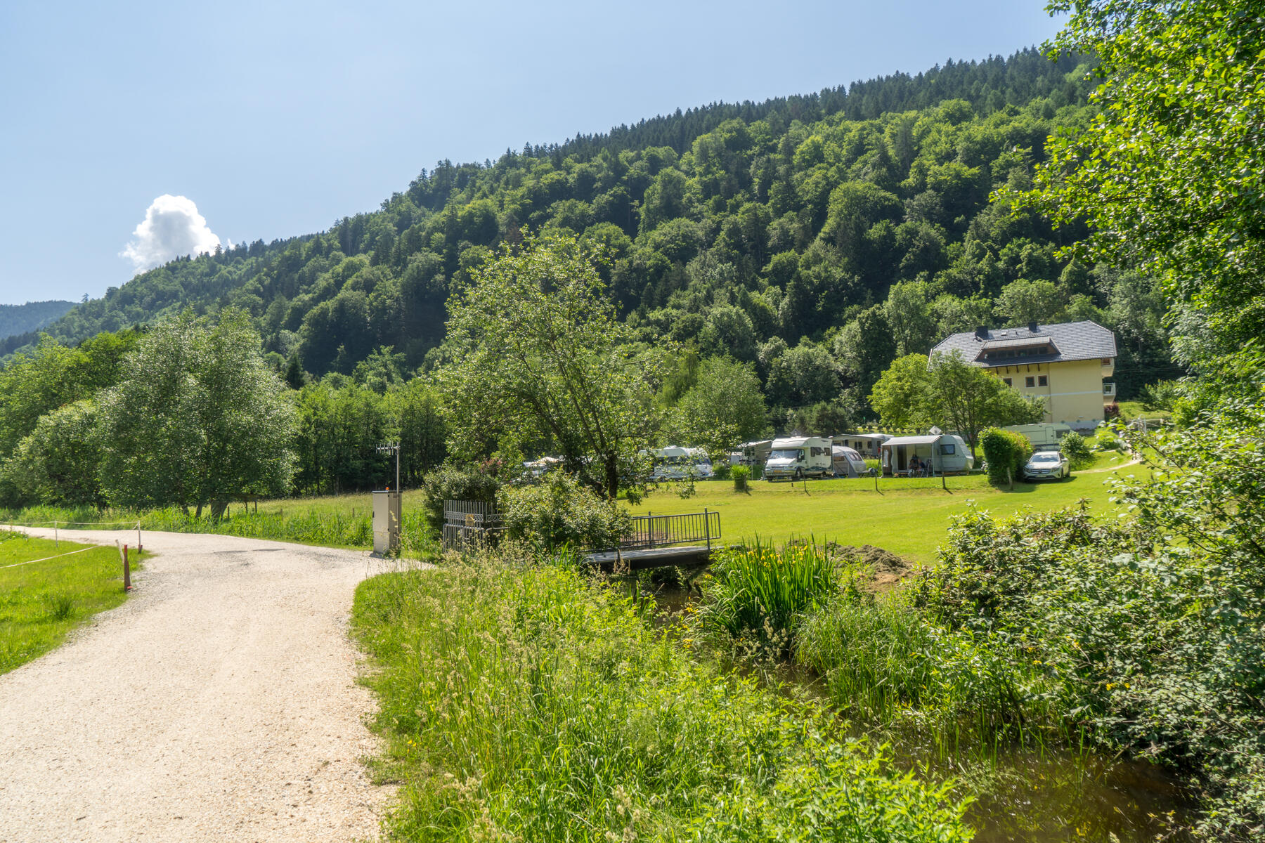 Schon die Lage unseres Campingplatzes nahe dem Südostufer des Ossiacher Sees ist einmalig. Hier dominiert noch eine paradiesische Ruhe, um Kraft zu tanken und den Alltag hinter sich zu lassen. Über eine private Fußgänger-Brücke bietet Ihnen unser Areal einen direkten Zugang zum „Naturschutzgebiet Tiebelmündung – Bleistätter Moor“. Dieser Slow Trail führt durch das Naturschutzgebiet und nach Steindorf. Entlang der Ossiacher Tauern können Sie auf herrlichen, durch unberührte Natur führenden Wanderwegen im Wald wandern und ausgiebig radeln.